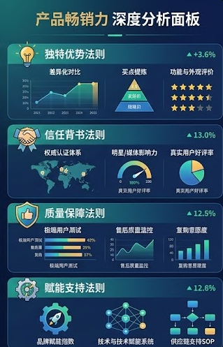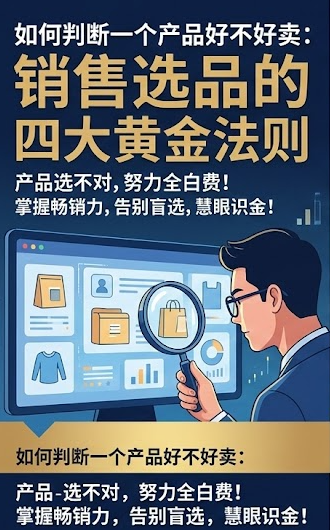 那么,到底如何判断一个产品好不好卖?Humanology(本公司)结合多年的销售培训与市场研究经验,归纳出“产品畅销力”的四大黄金法则:独特优势法则、信任背书法则、质量保障法则、赋能支持法则。这四个维度,是我们判断产品潜力、降低囤货风险、提升转化率的核心指标。