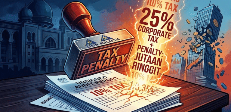 Tahukah anda? Walaupun anda telah melantik perunding cukai profesional, membuat pengisytiharan tepat pada masanya dan melengkapkan semua dokumen, anda masih boleh dianggap “cuai” oleh LHDN hanya kerana satu “laporan audit yang belum ditandatangani”, lalu dikenakan kadar cukai sebanyak 25%? Lebih mengejutkan, syarikat ini pada awalnya menyangka hanya perlu membayar 10% cukai ke atas faedah, tetapi akhirnya dikenakan cukai yang jauh lebih tinggi kerana tafsiran undang-undang cukai oleh LHDN telah berubah!