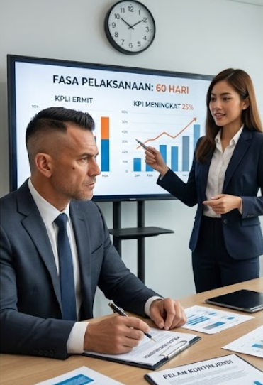 • Akhir projek: KPI meningkat X%, kepuasan pekerja meningkat Y%