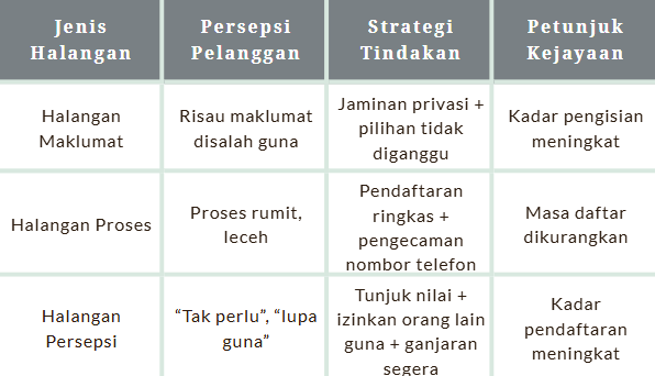Gaya hidup pantas menjadikan pelanggan tidak sabar. Proses panjang seperti isi nama, jantina, minat, penyakit, muat naik aplikasi dan pengesahan OTP sangat membebankan — lebih-lebih lagi jika pelanggan sedang terburu-buru, membawa anak, atau sedang beratur.